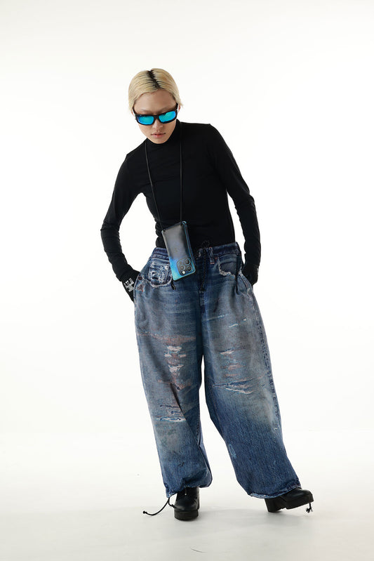 【NEW】FACE TATOO PRINT MOCK NECK LONGSLEEVE T-SHIRTS