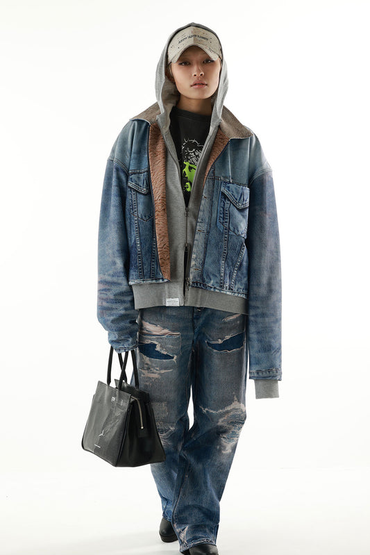 SOLD OUTPRINT LAYERD PARKA DENIM