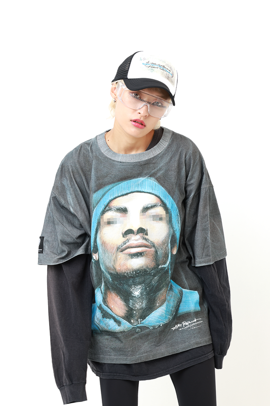 【NEW】FACE TATOO PRINT MOCK NECK LONGSLEEVE T-SHIRTS