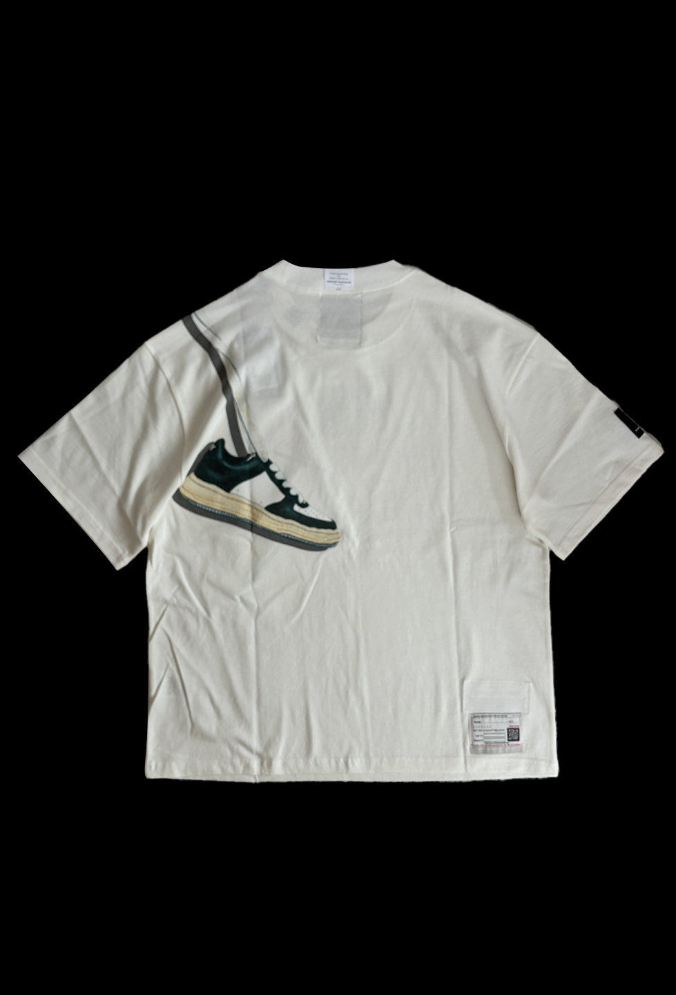 Maison MIHARA YASUHIRO(MMY)とTATAのコラボレーションTシャツ。洗いをかける程に風合いが出るアメリカンコットン風の生地を使用。MMYの代名詞と言えるスニーカーをビンテージTシャツに落とし込んだ1枚。イラストレーターJK氏による書き下ろし。