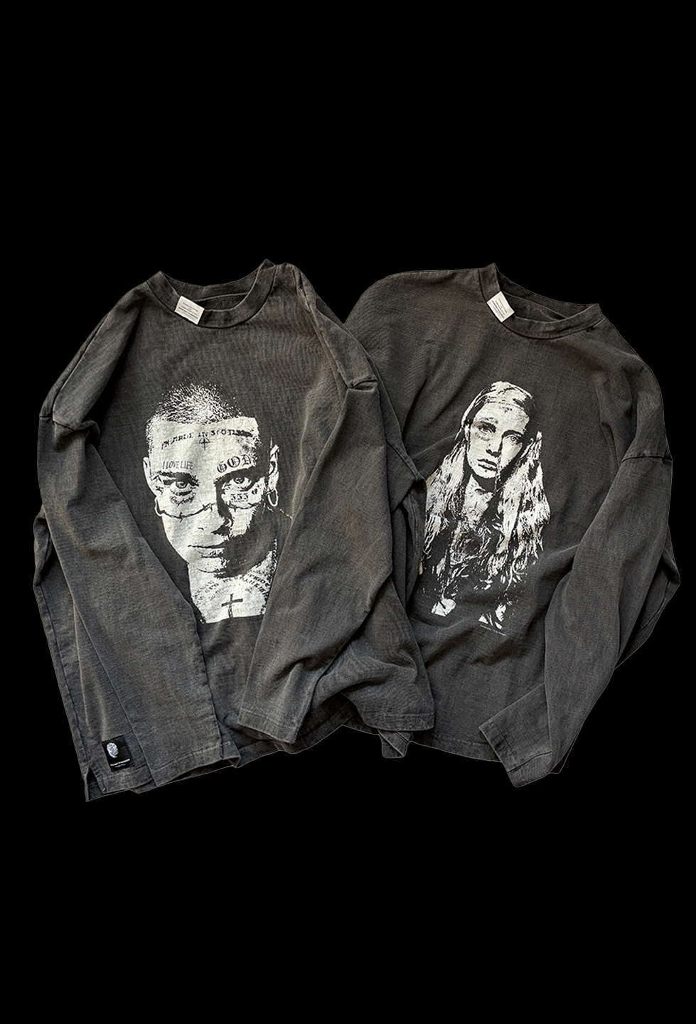 【NEW】FACE TATOO PRINT MOCK NECK LONGSLEEVE T-SHIRTS