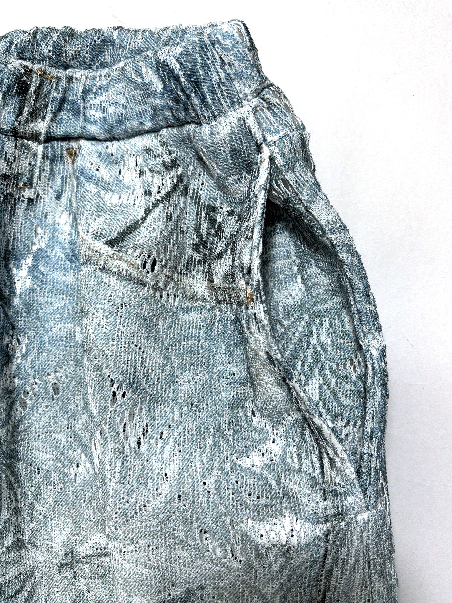 ヴィンテージで人気の66モデルのデニムをレース生地に転写。
